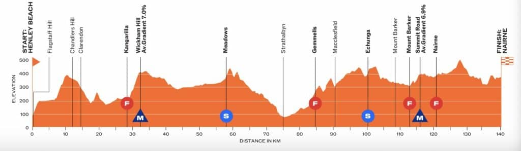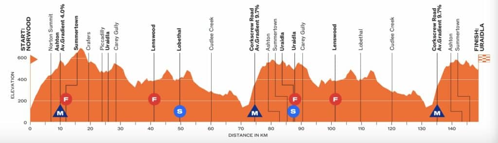 Pour clore cette édition, l’organisation mise sur l’inconnu avec un circuit exigeant autour de Stirling. Huit boucles, un profil en dents de scie et quatre côtes répertoriées, dont l’ultime montée vers Mount Barker Road (2 km à 4%, avec des rampes à 11%). Un terrain de jeu parfait pour les attaques incessantes.