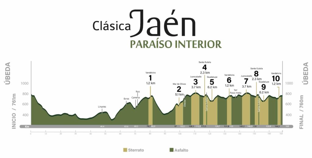 Valdelvira (1,2 km) : Le juge de paix. Situé à moins de 5 km de l’arrivée à Úbeda, ce dernier secteur, pentu et nerveux, est le lieu des ultimes sélections et du coup de poker final.