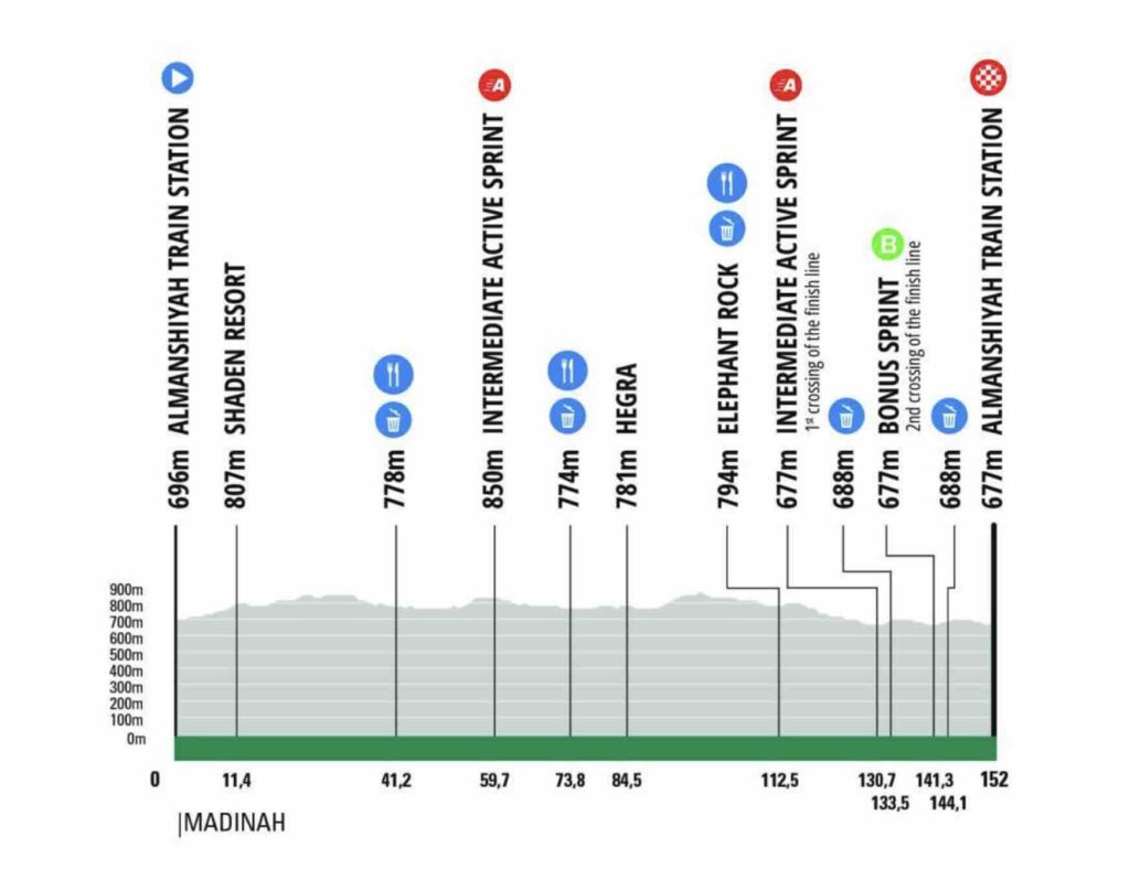 Mercredi 28 janvier : AlManshiyah Train Station > AlManshiyah Train Station (152 km). Similaire à la première, cette étape autour de l’ancienne gare du Hedjaz est un deuxième cadeau aux sprinteurs. Aucun faux plat ne devrait venir perturber les équipes des grands rapides.