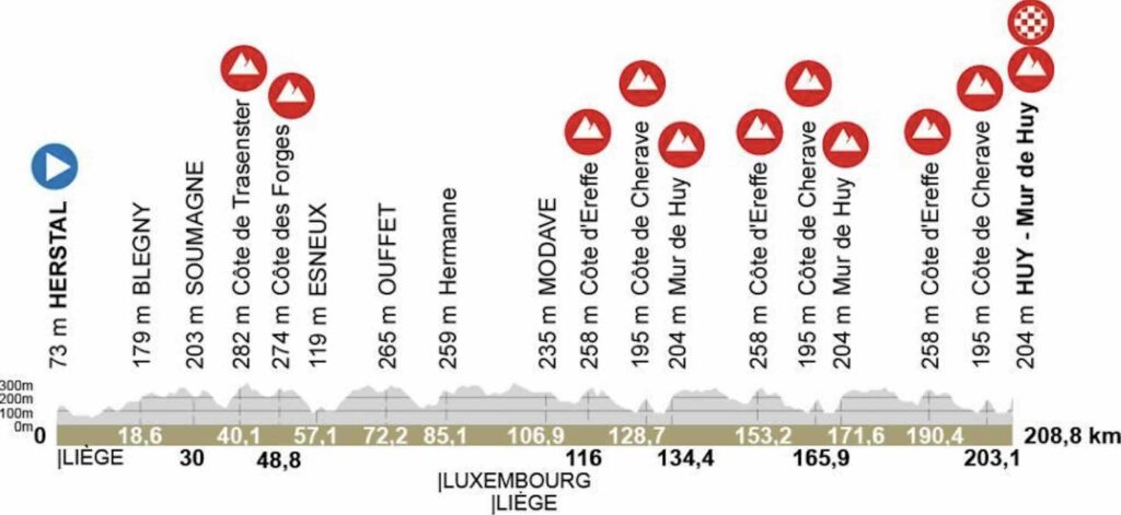 La Flèche Wallonne fête ses 90 ans avec une première : un départ donné de Herstal. Si l’arrivée demeure, pour la 41e fois depuis 1985, au sommet du cruel Mur de Huy (1,3 km à 9,6%), ce changement de départ n’est pas neutre. Le parcours masculin (208,8 km) s’allonge légèrement et impose d’entrée les côtes de Trasenster et des Forges. Un apéritif vigoureux destiné à éliminer les plus fragiles avant même l’entrée dans le circuit final. Selon la tradition établie, les coureurs affronteront trois fois le Mur de Huy dans le dernier tiers de course, un format qui a couronné les puncheurs absolus comme Julian Alaphilippe ou… Tadej Pogačar, tenant du titre. La course féminine (148,2 km) conservera son format avec deux ascensions du Mur. Une question se pose : ce nouveau départ, plus urbain, va-t-il influencer la dynamique de course et l’approche des équipes dans les premiers kilomètres ?