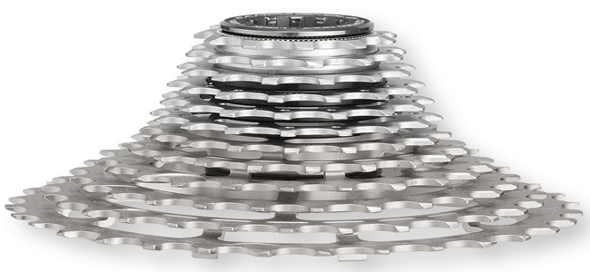 Il est toujours possible de douter de l’intérêt de cette nouveauté, mais venant de Campagnolo, ce n’est jamais anodin… Intérêt pour le cyclo qui ne rêve que d’escalades, l’autre n’a pas trop besoin de ça.. B;Kouchner nous dirait que « c’est comme le secrétariat d’état aux droits de l’homme, ça sert à rien, ça gêne »…. Intérêt pour la course, avec cette chaine plus fine, meilleur rendement entre autres avantages, en plus de l’étagement des pignons… Sans compter que ces fameux Aqua Blue avec leur beau vélo 3T, adeptes du mono-plateau, y verront sans doute une avancée… Et puis si ces cassettes sont compatibles, il n’y a pas grand chose à en redire… Pas de quoi poser autant de questions que les freins à disques… qu’ont trop versés… dans les fossés pour certains premiers utilisateurs …