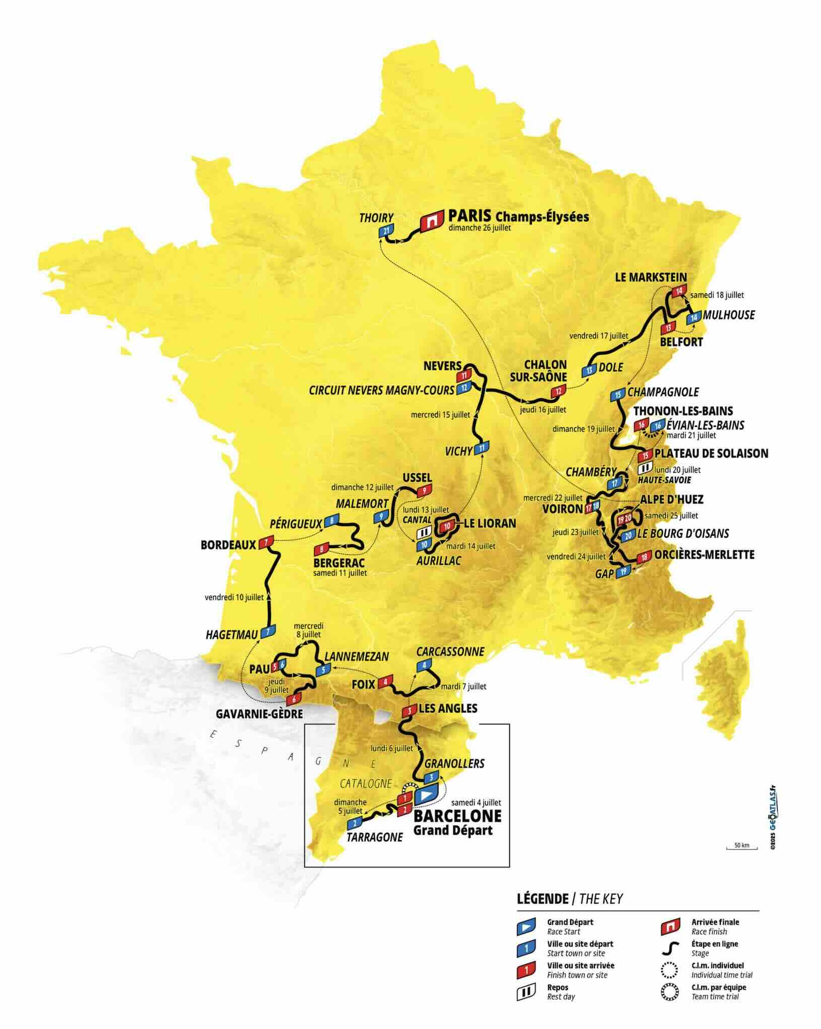Carte du parcours du Tour de France 2026