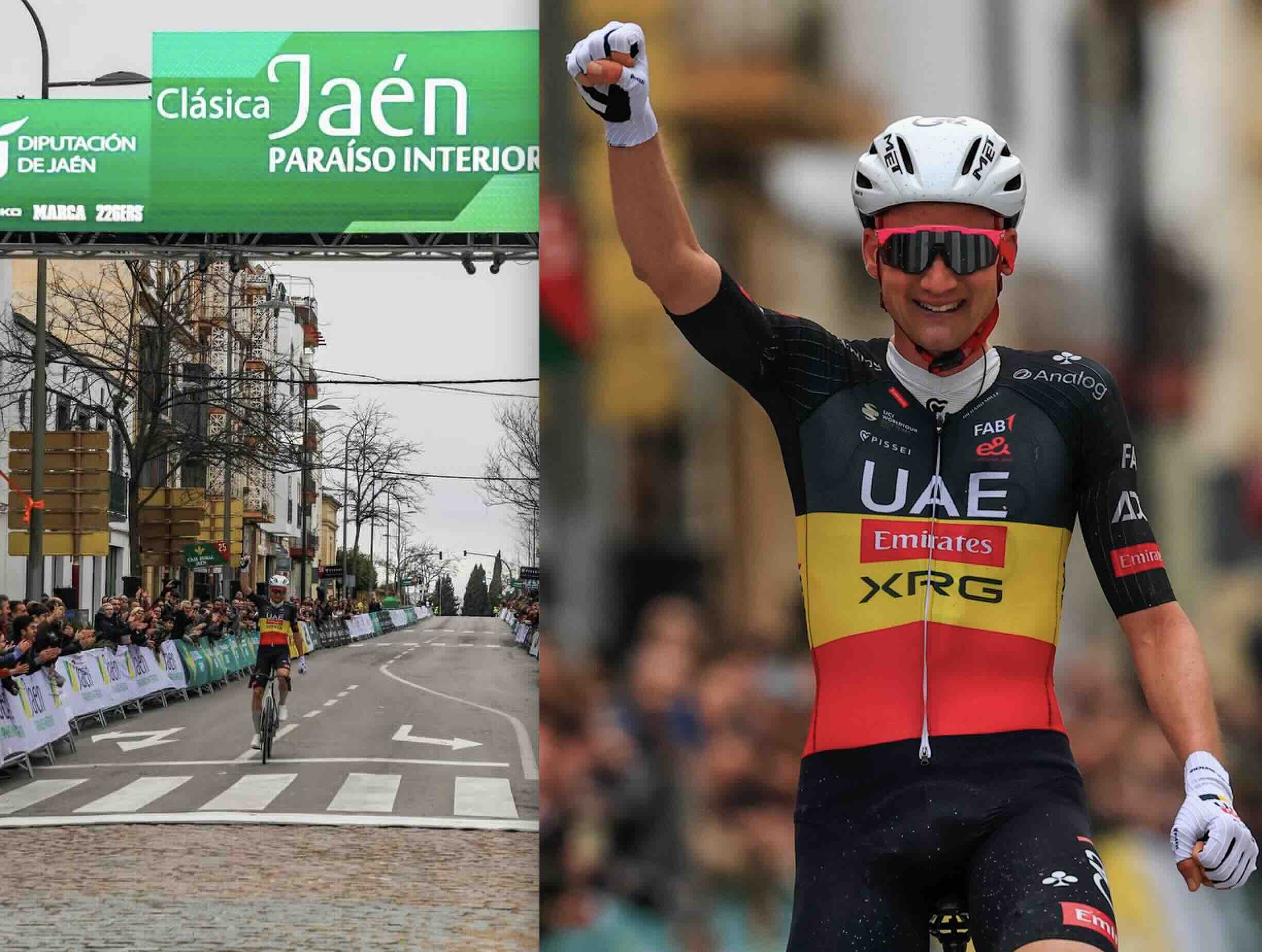 Elles sont là, ces fameuses étendues argentées de la province de Jaén, avec leur lumière si particulière de février. Le décor est planté, identique depuis cinq ans, mais le scénario, lui, a changé de main. Tim Wellens (UAE Team Emirates-XRG) n’a pas seulement gagné la Clasica Jaen 2026, il l’a matée. Il a dompté ces 154 kilomètres de pièges andalous avec la rage de celui qui avait déjà goûté à toutes les places d’honneur sans jamais moncher la plus haute marche. Après une deuxième, une troisième, une quatrième et une dixième place, le Belge de 34 ans est venu inscrire son nom en lettres capitales sur le palmarès, et il l’a fait avec un raid en solitaire de 55 kilomètres qui restera dans les annales de la jeune épreuve. Un numéro de maître, exécuté sur les routes blanches qu’il chérit tant.