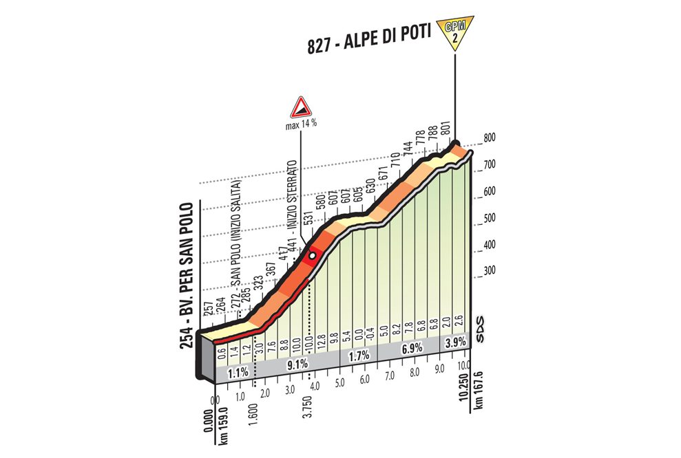Les suiveurs sont d’accord pour dire que cette étape du Giro sera un véritable chantier. Les conditions météorologiques annoncent quelques pluies ce qui ne facilitera pas la progression des coureurs dans la dernière ascension en chemin de terre. La descente qui s’en suit pour plonger vers l’arrivée s’annonce particulièrement technique et délicate. Quant au dernier kilomètre, des rampes à 11% permettront à un homme fort de s’imposer. Un baroudeur peut-il aller s’imposer à Arerro ? Une chose est sûre, ça ne sera pas un sprint massif qui donnera le nom du vainqueur aujourd’hui…