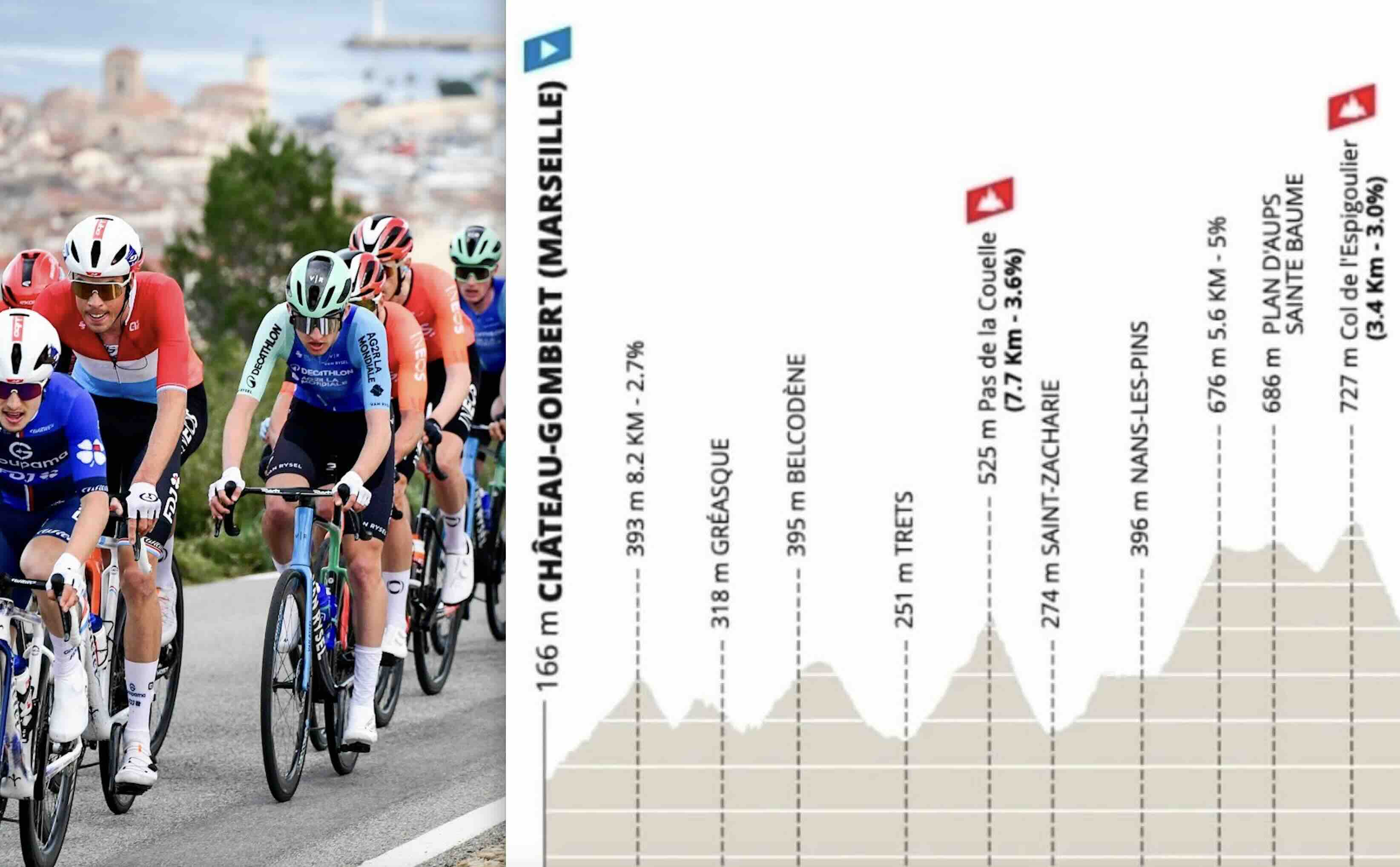 Le départ réel à Château-Gombert est un coup de feu. Immédiatement, 8 km à 3% montent vers Gréasque. C’est le terrain de jeu idéal pour la traditionnelle échappée matinale, composée souvent de baroudeurs et de jeunes loups avides de visibilité. Mais avec un peloton motivé et quatre équipes WorldTour (Decathlon CMA CGM, Alpecin-Premier Tech, Groupama-FDJ United, Lotto Intermarché), sa marge de manœuvre sera mince.
