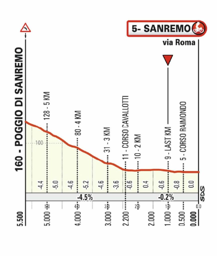 Le Poggio di Sanremo (3,7 km à 3,7%) reste l’icône. Mais comme le démontrent les dernières éditions, il est désormais le second acte d’un final en deux temps. Ses 8% dans les 800 derniers mètres sont le dernier sanctuaire. Au sommet, après le virage à gauche où figurait la célèbre et disparue cabine téléphonique, la descente technique qui suit, avec ses virages en épingle, est tout aussi décisive. C’est là que des virtuoses comme Matej Mohorič (vainqueur en 2022) ou Tom Pidcock peuvent créer leur destin. Une fois la descente maîtrisée, il ne reste que 2 300 mètres de plat avant l’arrivée sur la Via Roma.