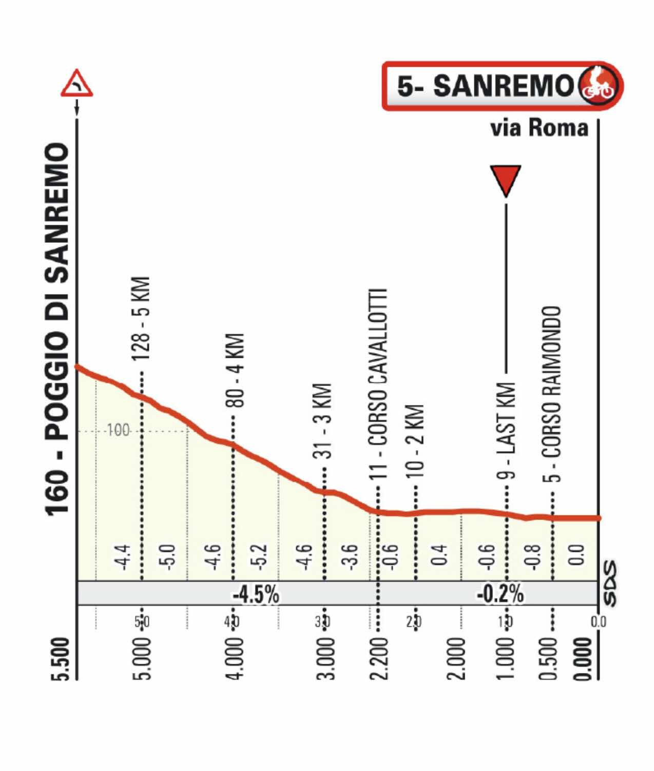 Arrivée prévue : Aux alentours de 17h, entre 16h37 et 17h14 (Via Roma, San Remo)