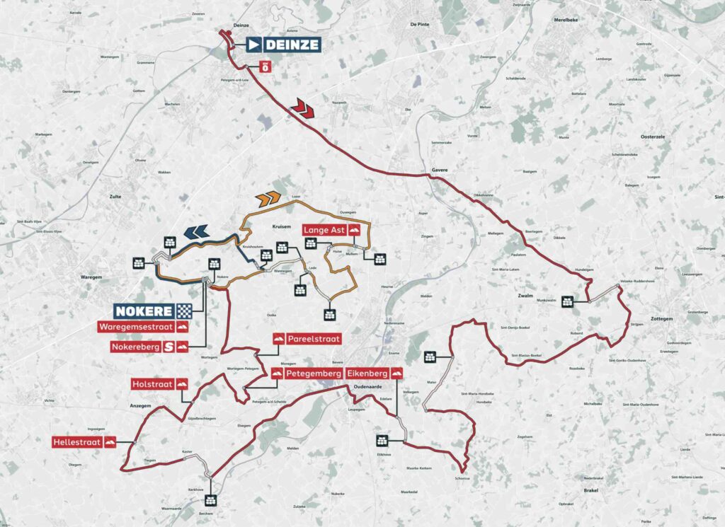 Le parcours 2026, long de 186,4 kilomètres, est fidèle à sa réputation : impitoyable. Si le départ est donné à Deinze, c’est bien sur les circuits locaux autour de Kruisem que la course va s’embraser. Avec 27 secteurs pavés et 12 ascensions répertoriées, le moindre grain de sable peut enrayer la mécanique des équipes de sprinteurs.