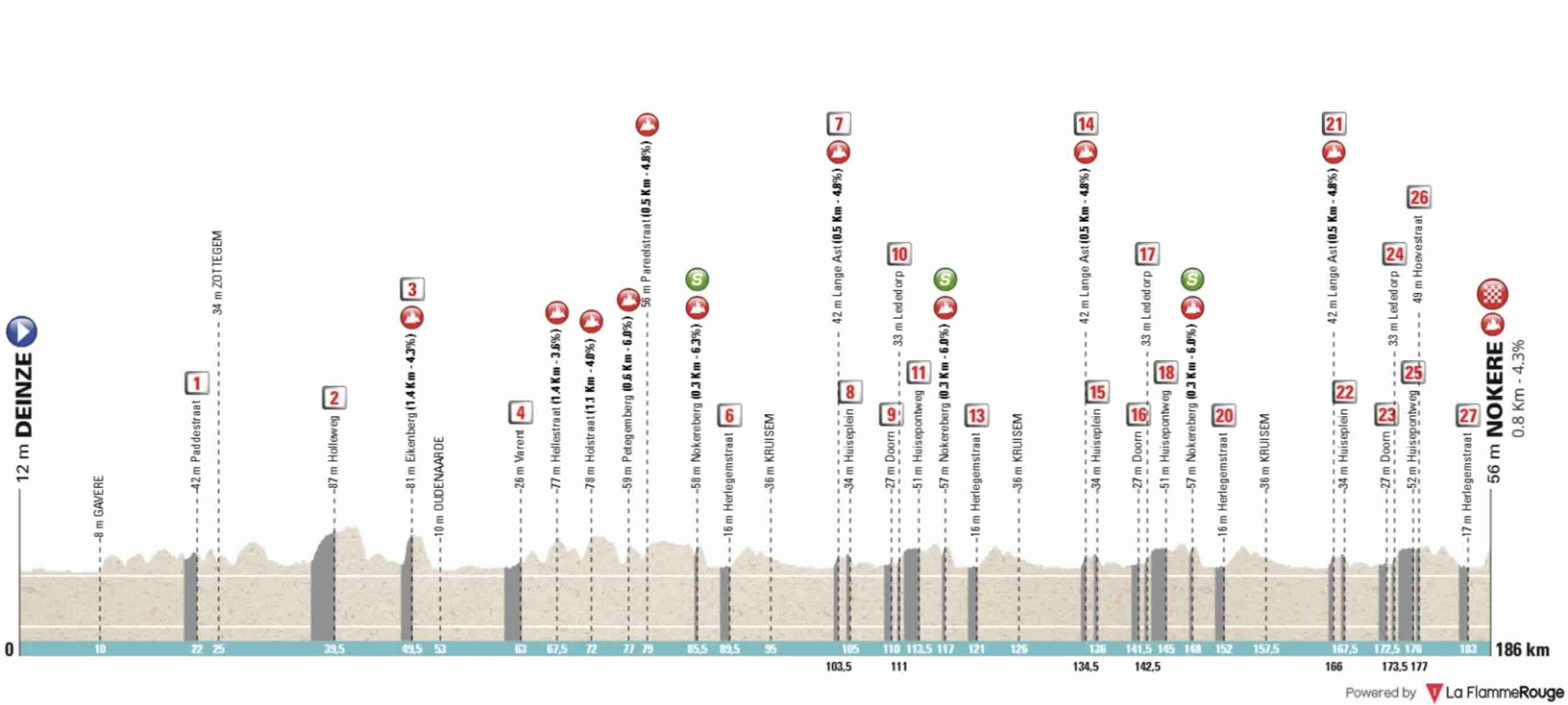 Le parcours 2026, long de 186,4 kilomètres, est fidèle à sa réputation : impitoyable. Si le départ est donné à Deinze, c’est bien sur les circuits locaux autour de Kruisem que la course va s’embraser. Avec 27 secteurs pavés et 12 ascensions répertoriées, le moindre grain de sable peut enrayer la mécanique des équipes de sprinteurs.