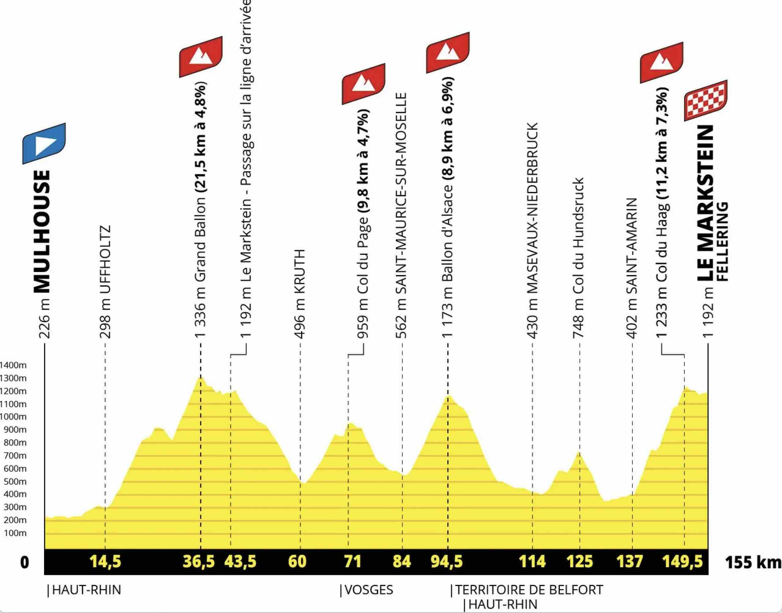 Christian Prudhomme, le directeur du Tour, ne s’y est pas trompé en qualifiant cette étape de « festival de grimpettes ». Après le Grand Ballon, le parcours enchaîne les difficultés, certaines connues, d’autres totalement inédites.