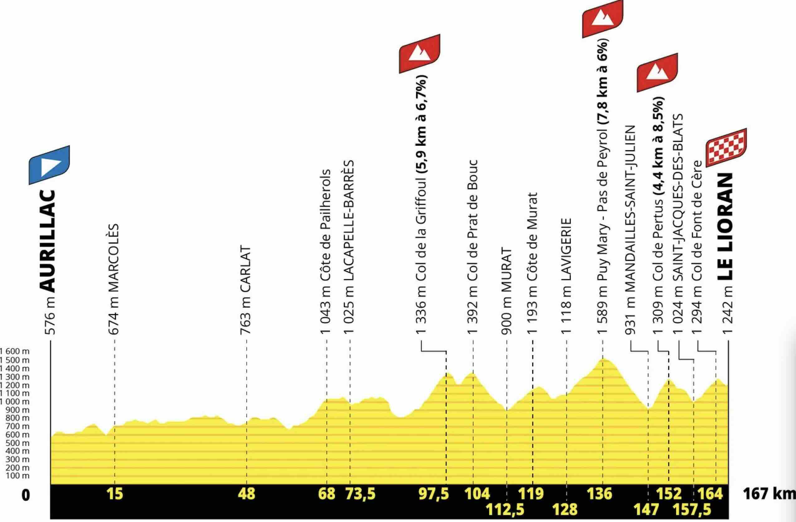Pour la dixième fois de son histoire, Aurillac, préfecture du Cantal, accueille une ville-étape. Le départ sera donné cours Monthyon, devant le siège du Conseil départemental, plongeant immédiatement les coureurs dans l’âpreté du terrain. Dès le 15ème kilomètre, un hommage sera rendu à Marcolès, berceau du critérium local, dans un geste symbolique rappelant les racines populaires de la course. L’itinéraire filera ensuite vers Carlat, Lacapelle-Barrès et Murat, posant les premiers jalons d’une journée qui n’aura rien d’une transition.