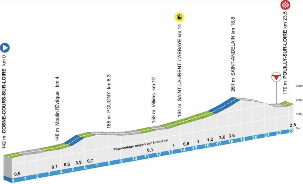 Contre toute attente, ce parcours entre Cosne-Cours-sur-Loire et Pouilly-sur-Loire, taillé pour les rouleurs, recèle de subtilités qui pourraient avantager les collectifs les plus fins tactiquement. On a pris le temps d’analyser le profil centimètre par centimètre.