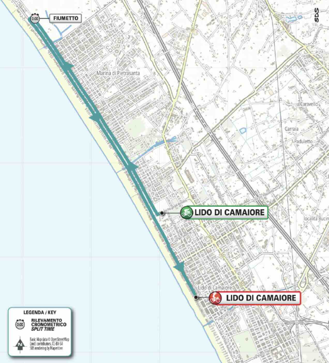 Dès le coup de pédale donné sur le Viale Cristoforo Colombo, le ton est donné. Nous ne sommes pas ici face à un parcours piégeux digne d’un Grand Tour, mais face à un « chrono de sprinteur » version longue. Le parcours de cette 1re étape est un aller-retour sec et efficace le long de la côte, à Lido di Camaiore en passant par Fimetto.