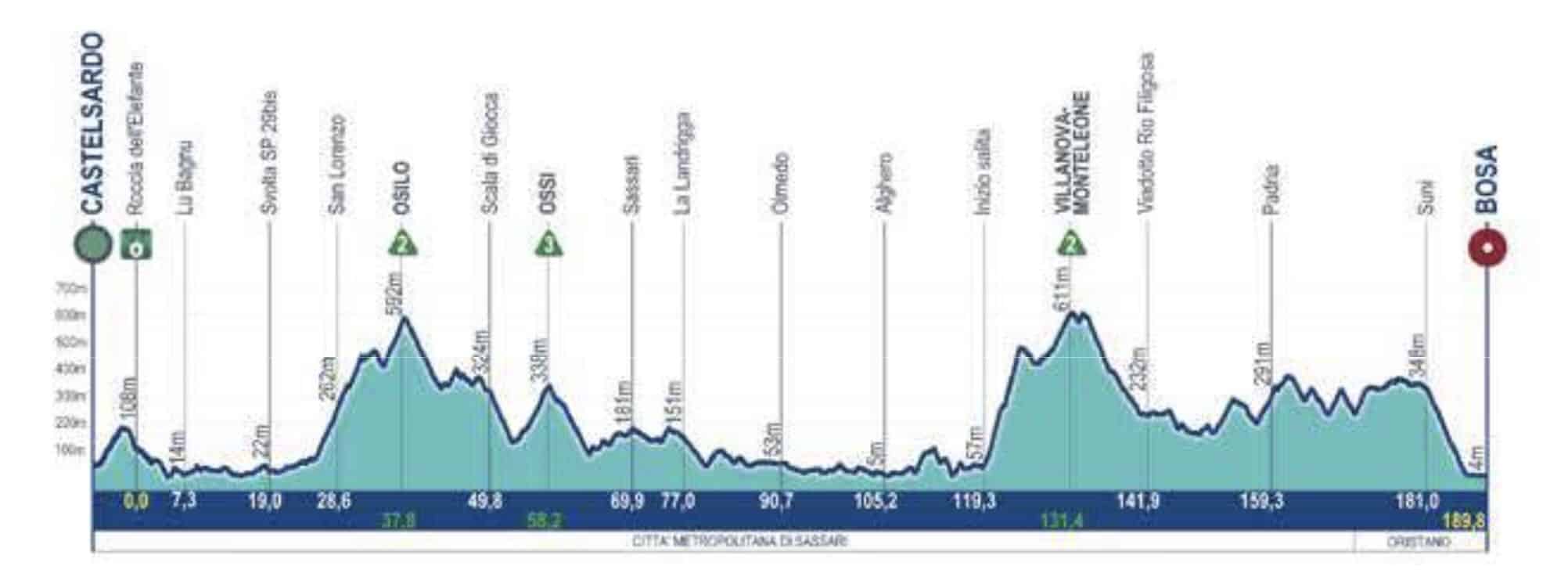 D’entrée de jeu, les sprinteurs peuvent ranger leurs espoirs. Avec 2780 mètres de dénivelé positif, cette étape est un piège absolu. Dès les premiers kilomètres, la bosse d’Osilo va créer la première sélection. Mais le juge de paix se situe au km 119 avec une difficulté non répertoriée de 5 km à 8,5%. L’enchaînement des trois GPM avant de plonger vers Bosa est un condensé de ce qui attend les coureurs. Attention à la descente technique de la Scala di Giocca qui pourrait surprendre les moins audacieux.