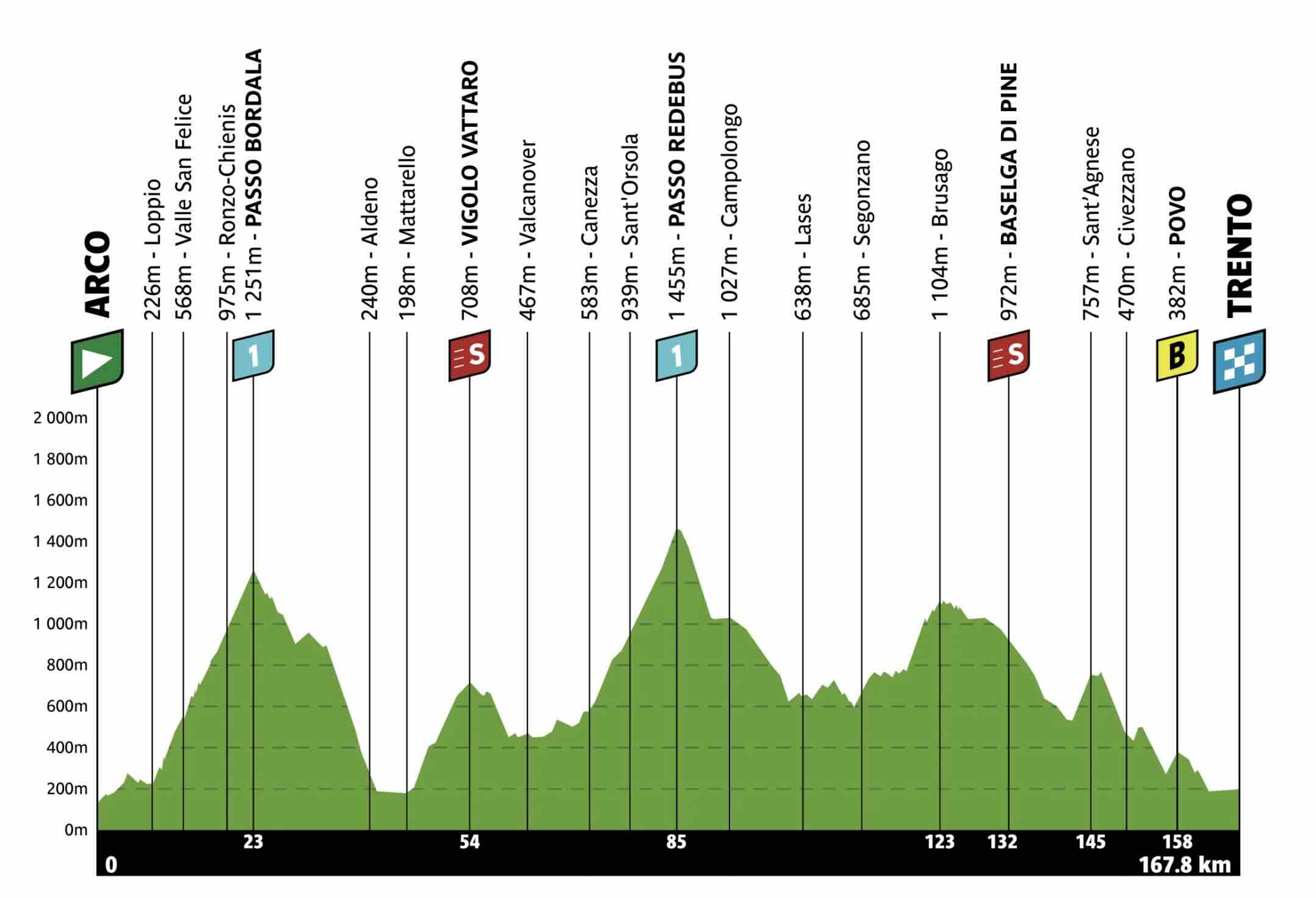 C’est ici que le classement général se brisera. Avec 4 100 mètres de dénivelé positif, cette quatrième étape est un enchaînement sadique : Passo del Bòrdala (14,8 km), Vigolo Vattaro (8,4 km) et le Passo Redebus (13 km). Mais ne vous fiez pas aux pourcentages moyens (6-7%). Selon nos données, les rampes du Redebus cachent des passages à plus de 12%. L’arrivée à Trente, précédée par la courte mais explosive montée de Sant’Agnese, sera le théâtre d’une véritable guerre nerveuse.