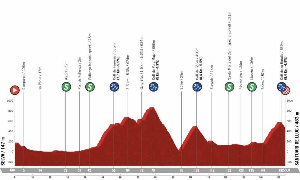 Le départ fictif est donné à 12h20 depuis Selva, avec une arrivée estimée aux alentours de 16h05 au sanctuaire de Lluc. Préparez-vous donc à un après-midi de suspense pur, où chaque attaque dans les contreforts de la Serra de Tramuntana pourra être décisive.